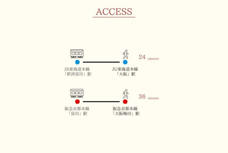 ①JR東海道本線「摂津富田」駅と阪急京都線「富田」駅の2沿線利用可能!