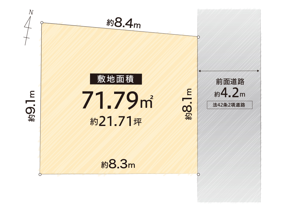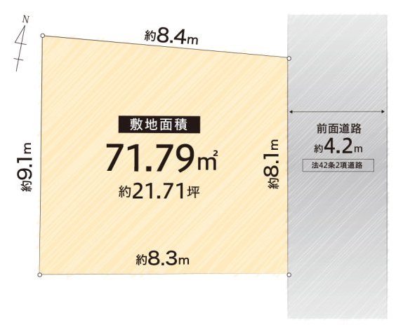| 土地面積 | 71.79㎡(21.47坪) | 接道状況 | 東側 幅員約4.0m 42条2項 |