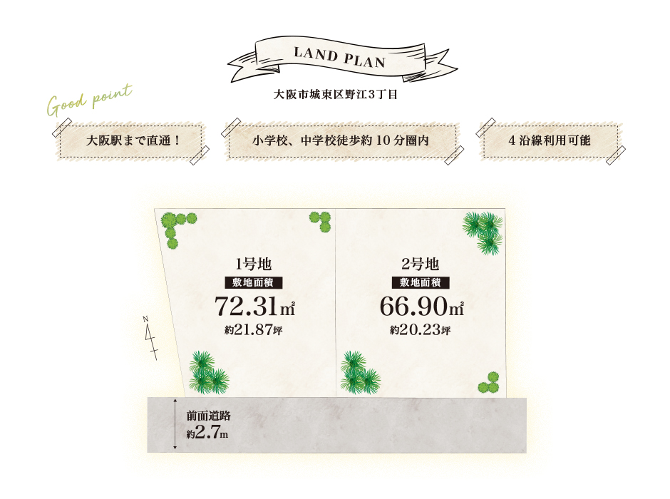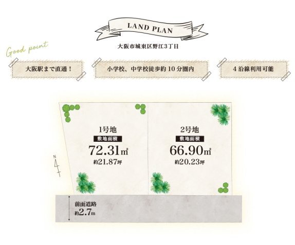 所在地 | 大阪市城東区野江3丁目 1号地 | 価格 | 3,480万円 |