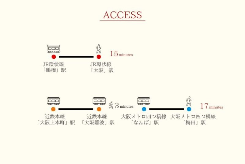 電車で(「鶴橋」駅~「梅田」駅)20分!