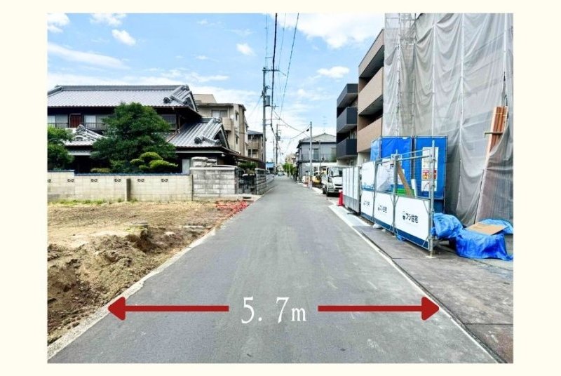 土地面積 | 100㎡(30.25坪) | 接道状況 | 南側に約8.5m接面、幅員約4.9m / 東側に約8.5m接面、幅員約5.3m |
