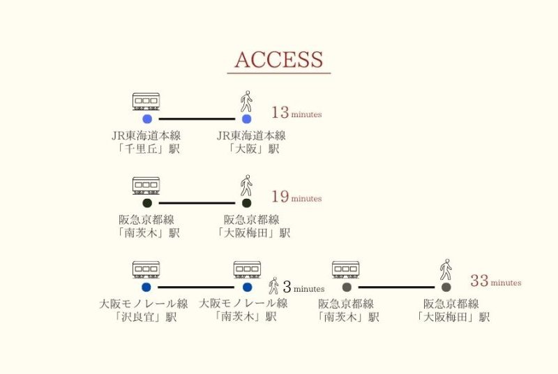 阪急京都線「南茨木」駅~「大阪梅田」駅まで電車で約19分